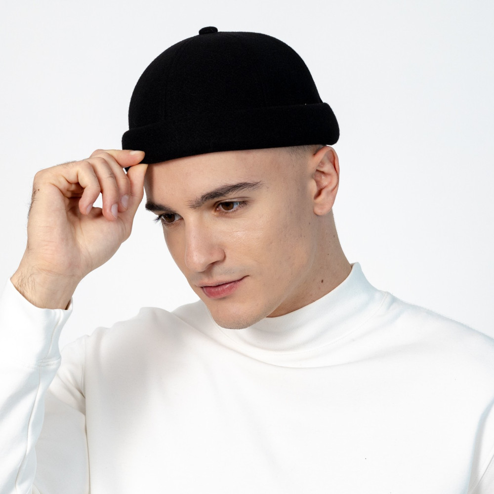 Бейсболка без козирка з регулятором чоловіча вовна чорна ГРЕЙ 554-245