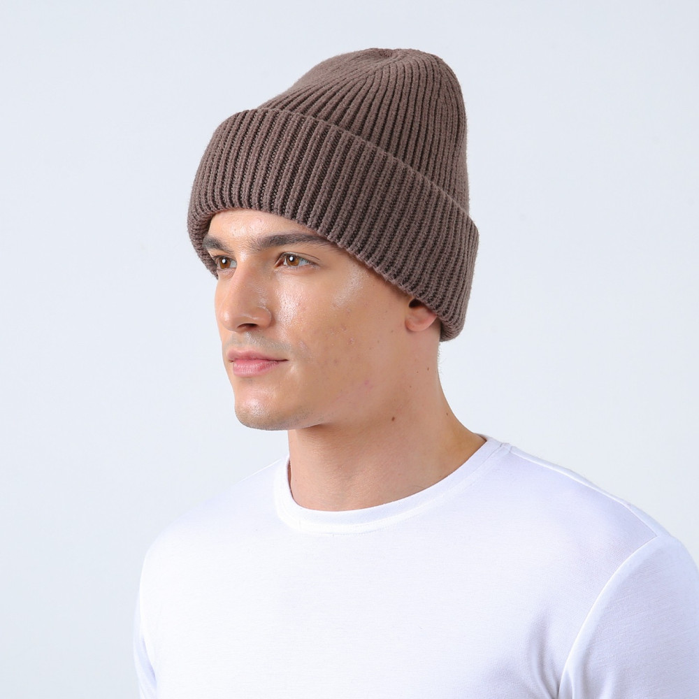Шапка біні чоловіча ангора з віскозою коричнева ЕЛМЕР 880-320