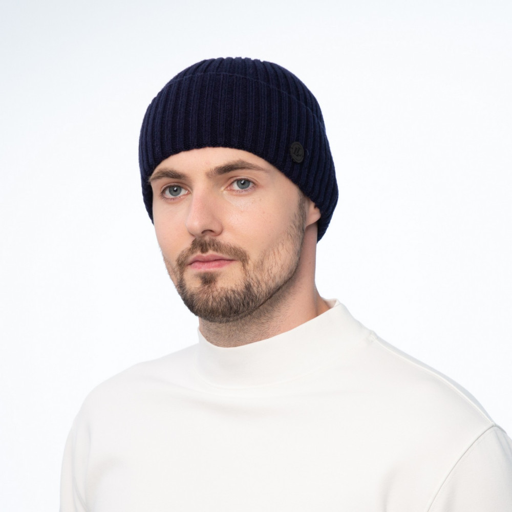 Шапка по голові чоловіча вовна з акрилом синя RONALD 225-398