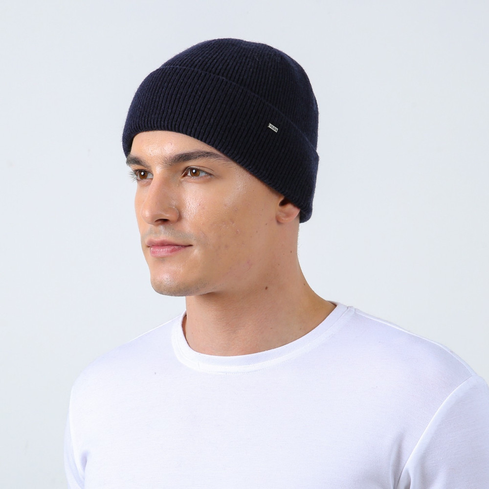 Шапка по голові чоловіча вовна з кашеміром синя ФРАНК 330-153