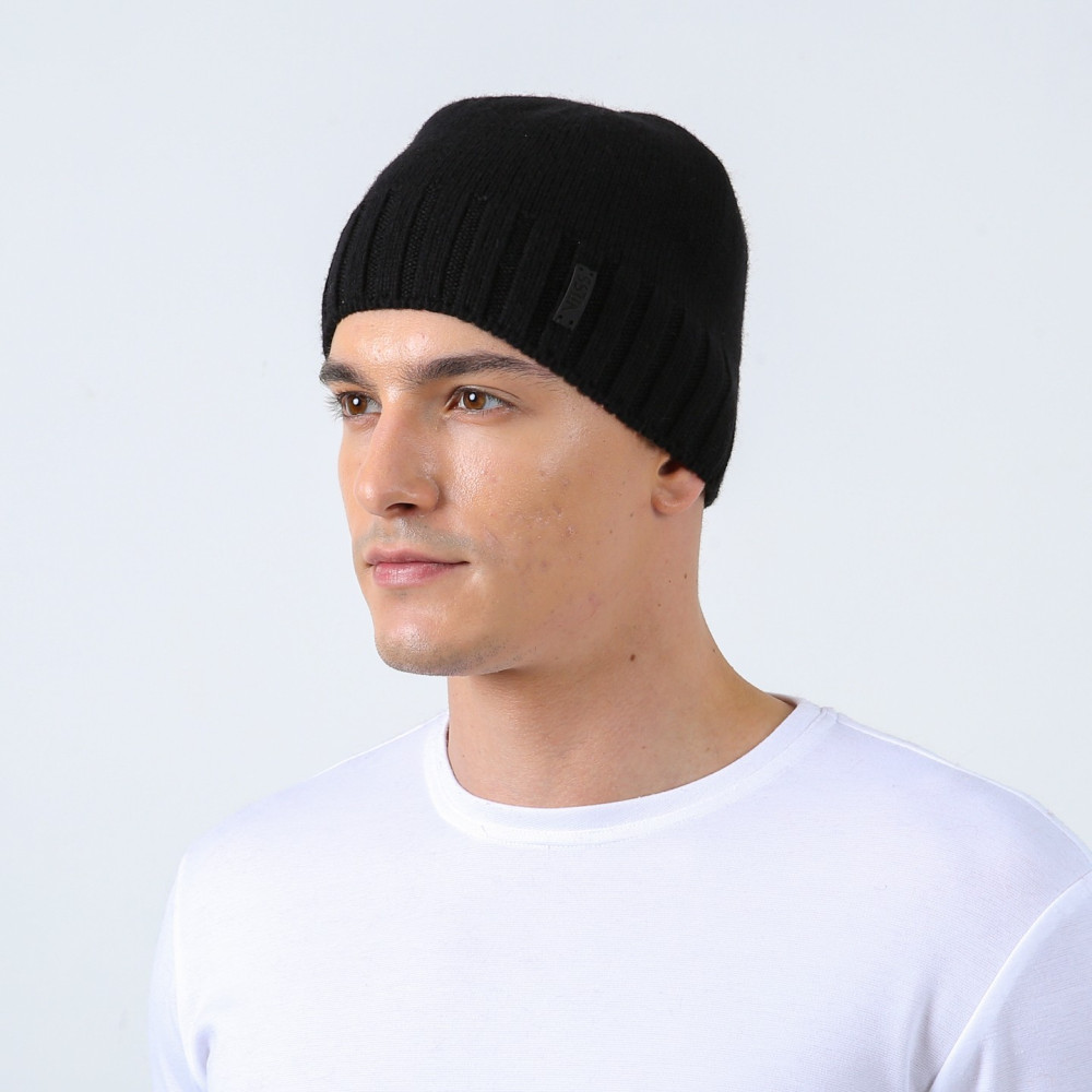 Шапка по голове мужская шерсть с кашемиром черная РОБИН 330-122