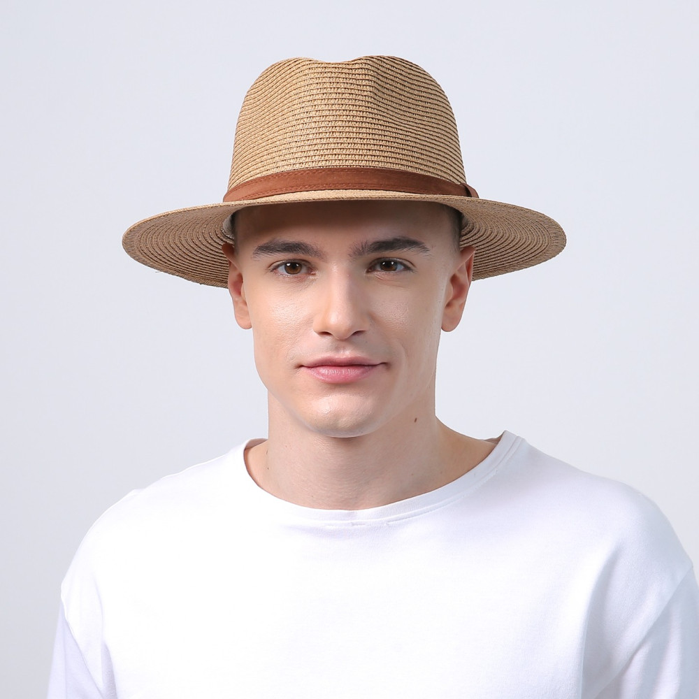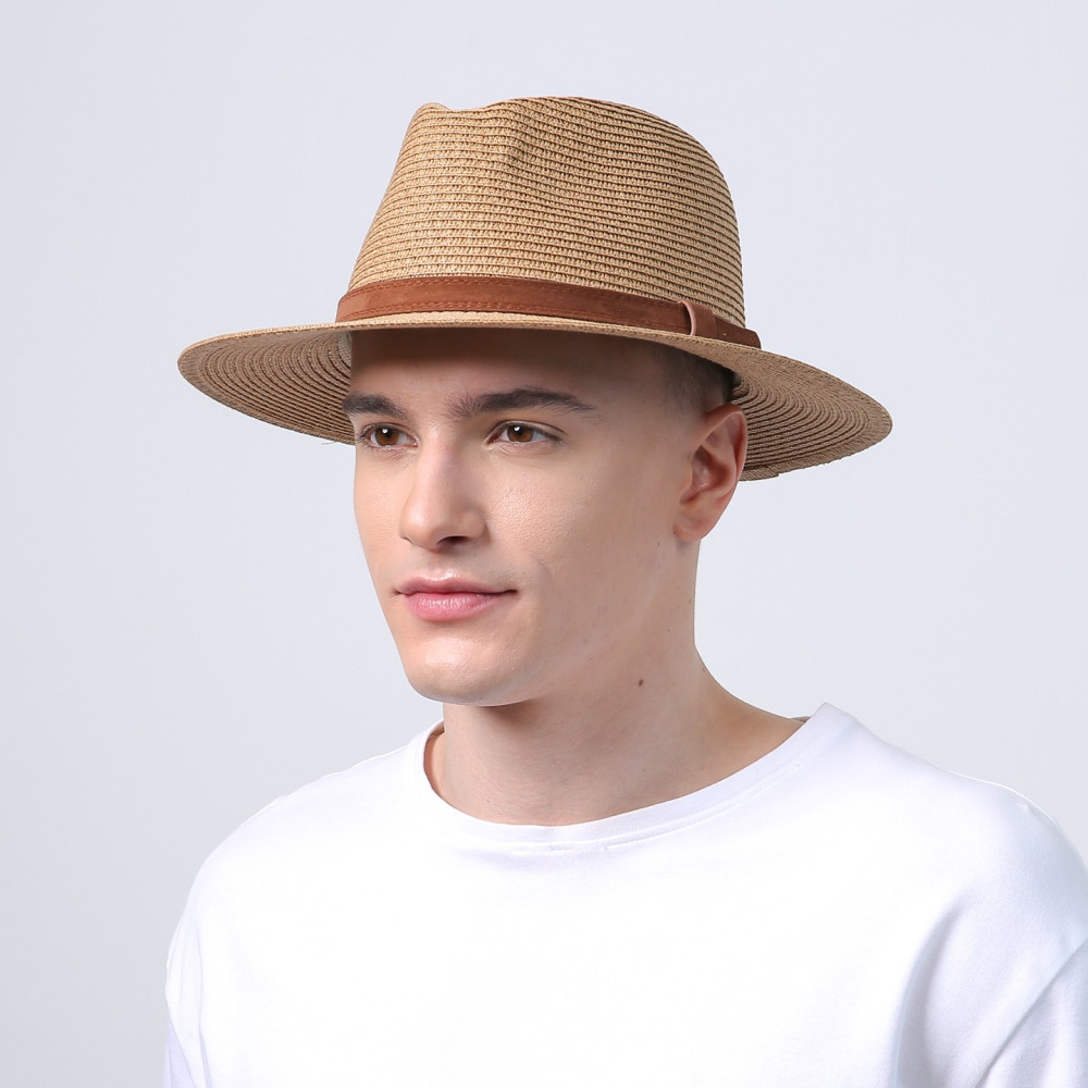 Шляпа федора мужская с ремешком бумага бежевая АДЕЛИН 733-633