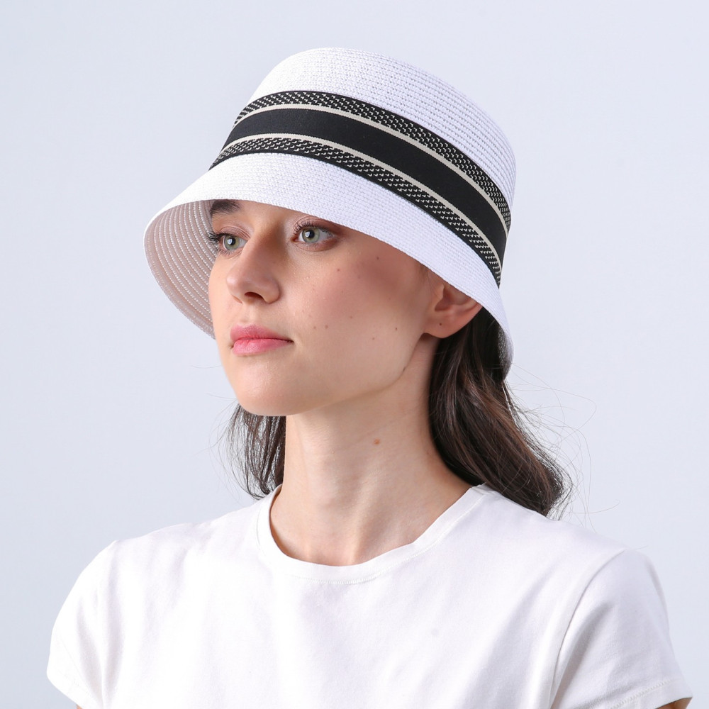 Панама женская с лентой бумага белая ЛОЛИ 803-121