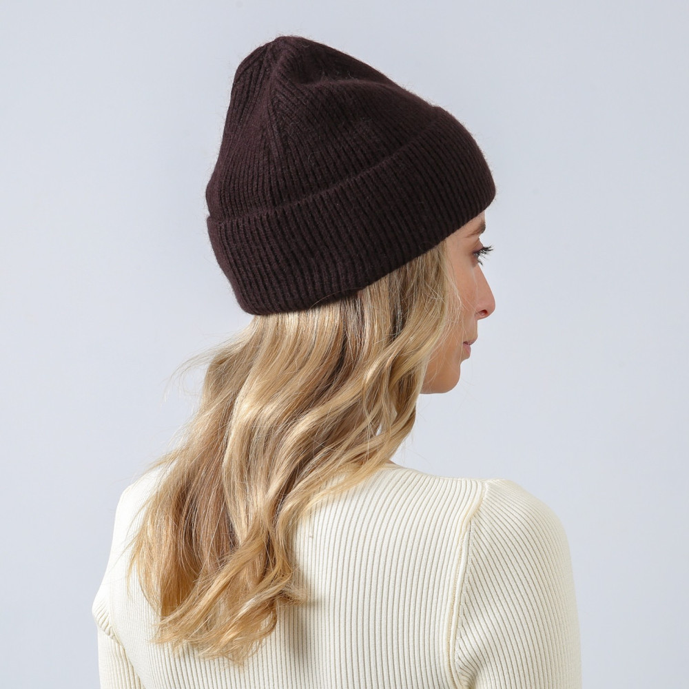 Шапка бини женская вискоза с ангорой коричневая МЕРИДА 880-559