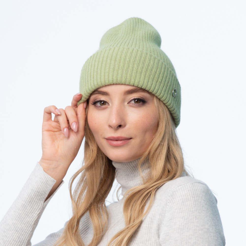 Шапка бини женская ангора с шерстью зеленая AVA 237-094