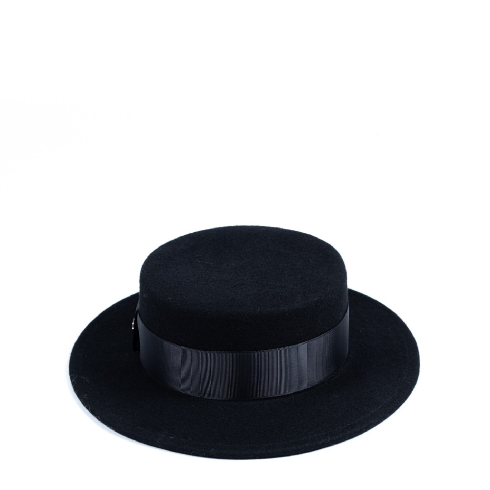 Шляпа канотье женская с лентой фетр черная ДЕЙЗИ 659-965