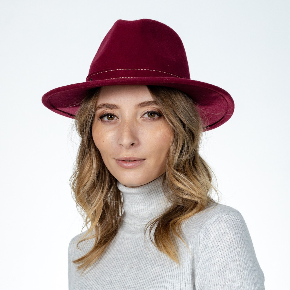 Шляпа федора женская с ремешком фетр бордовая МЕДОУ 574-342