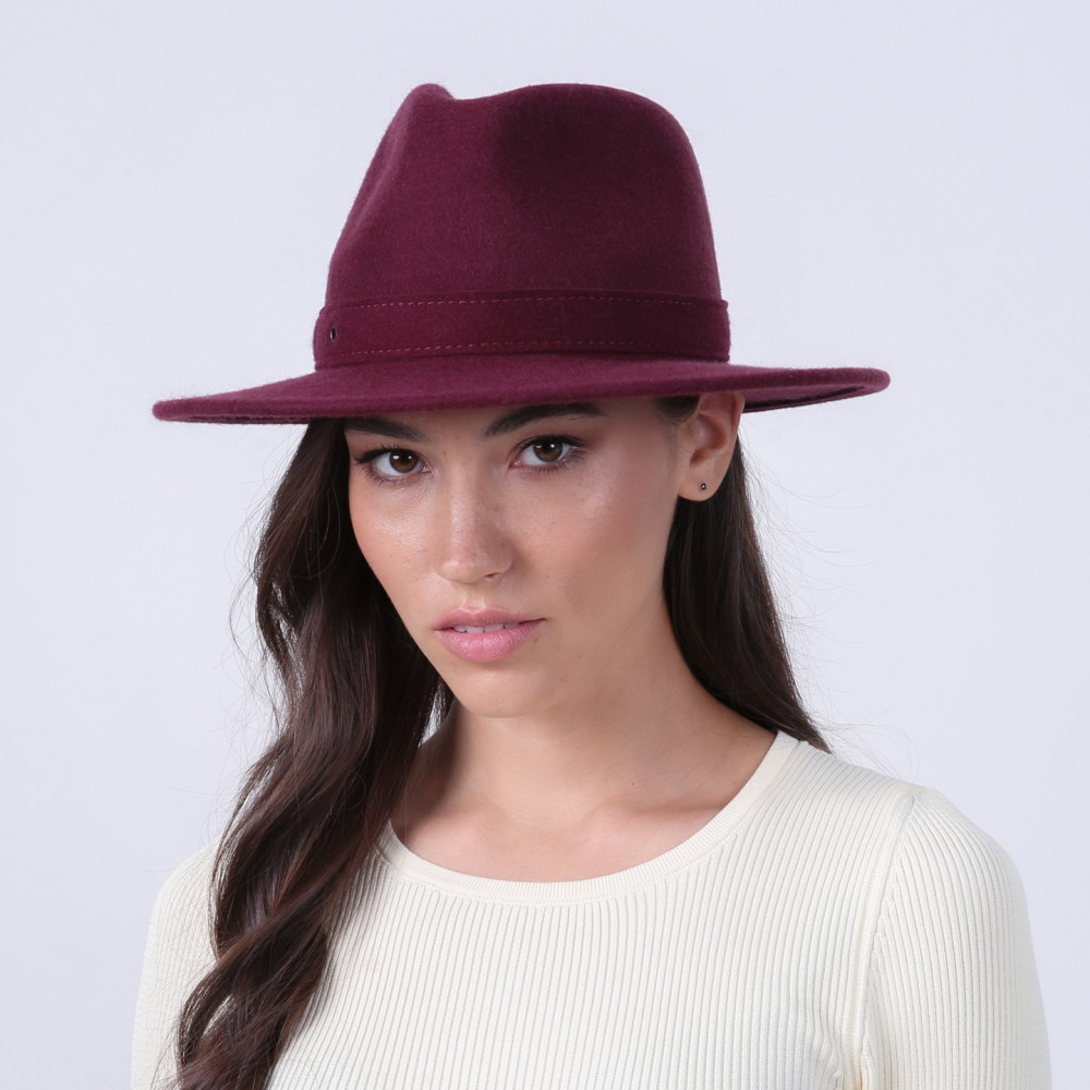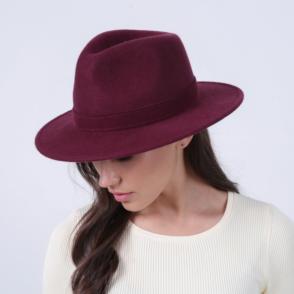 Шляпа федора женская с ремешком фетр бордовая МЕДОУ 919-822