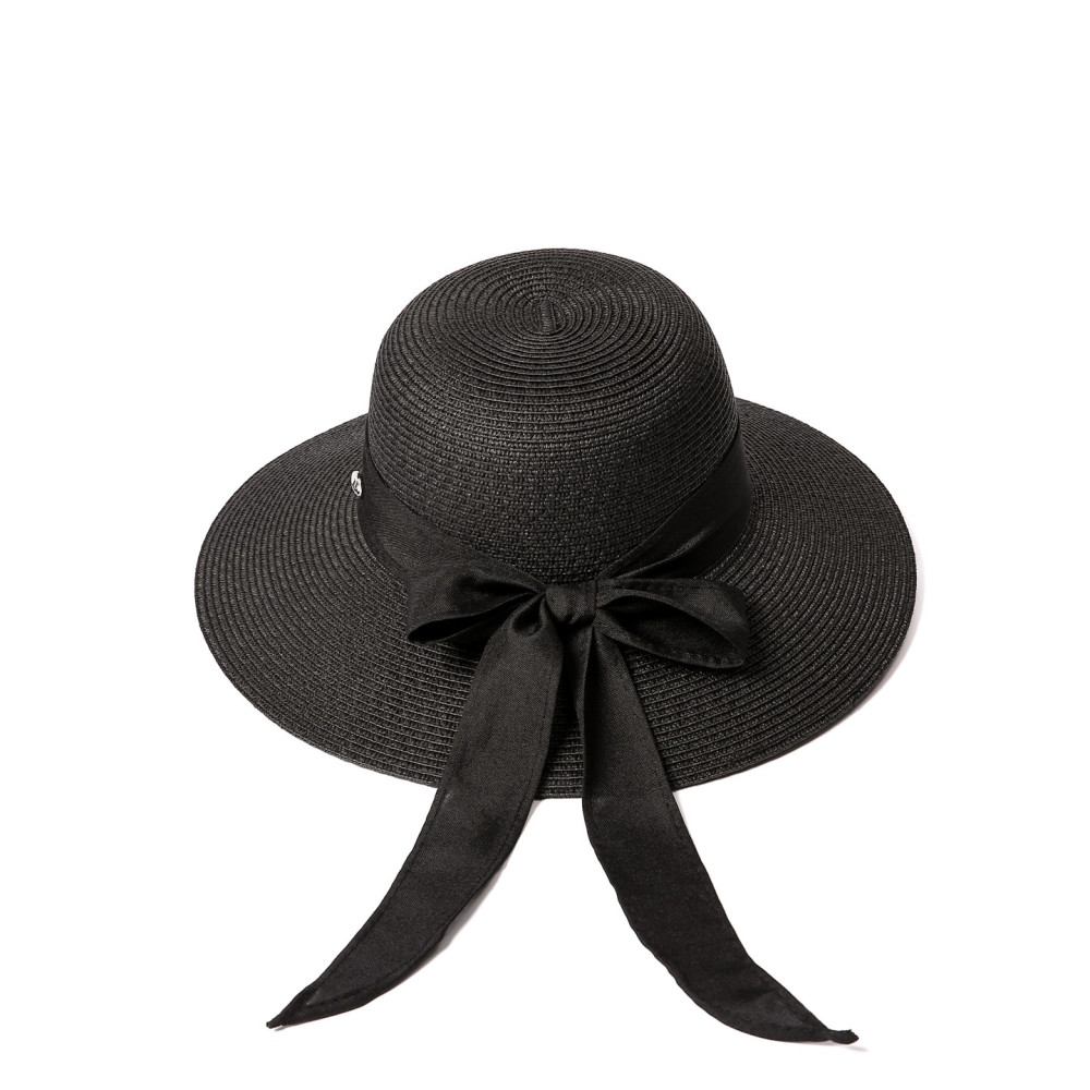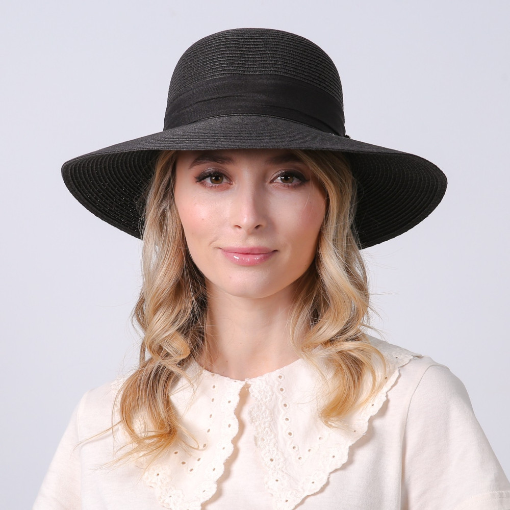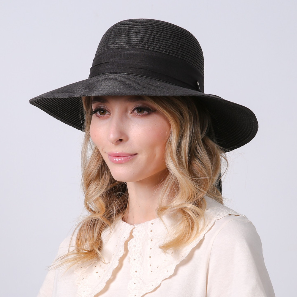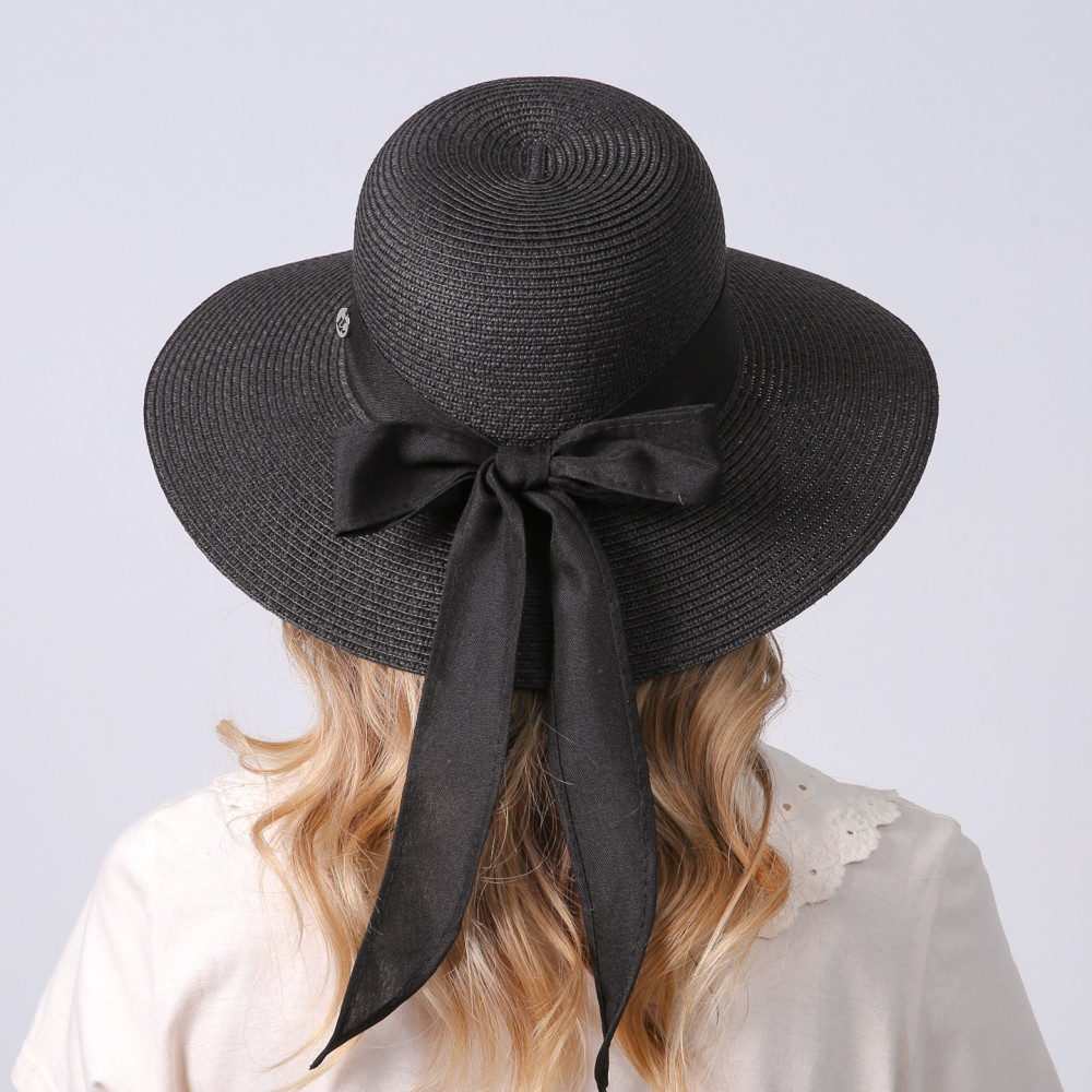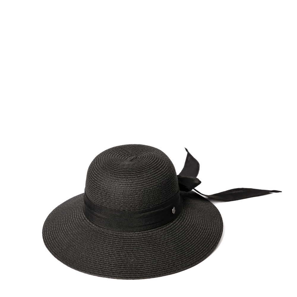 Шляпа со средними полями женская с лентой-бантом бумага черная MONIKA 733-695