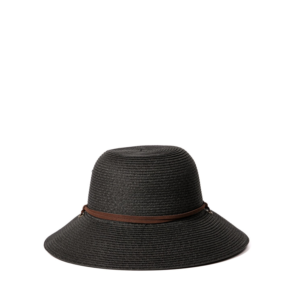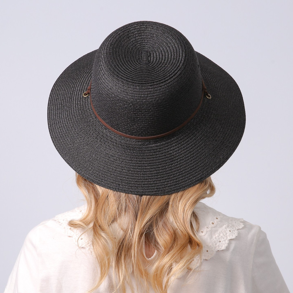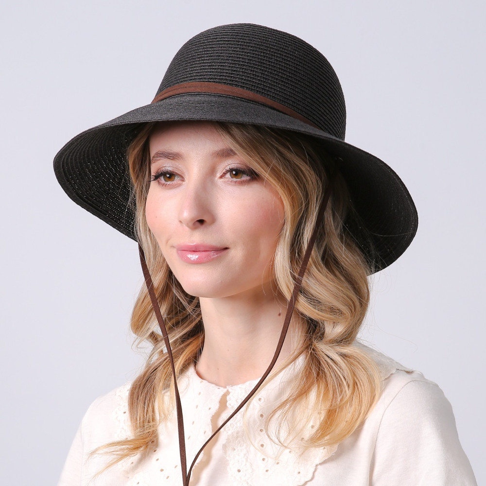 Шляпа со средними полями женская с веревкой-завязкой бумага черная ДАЛИЯ 734-340