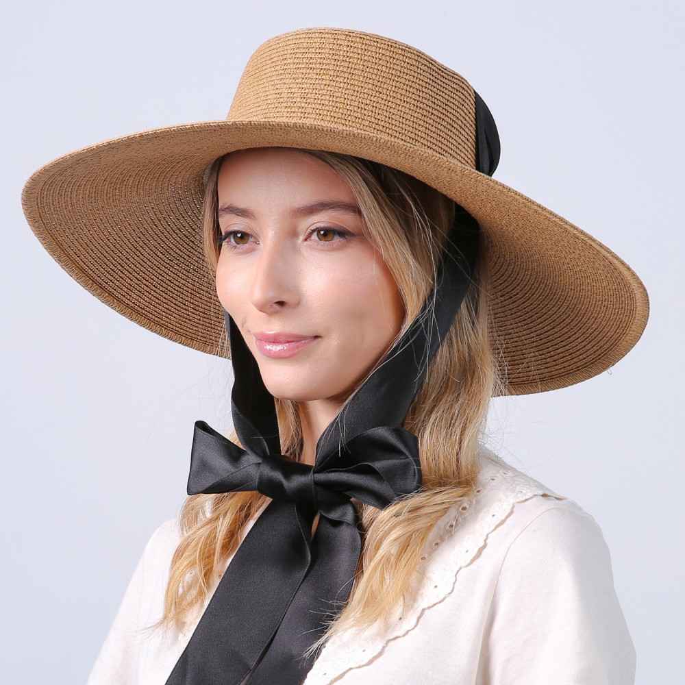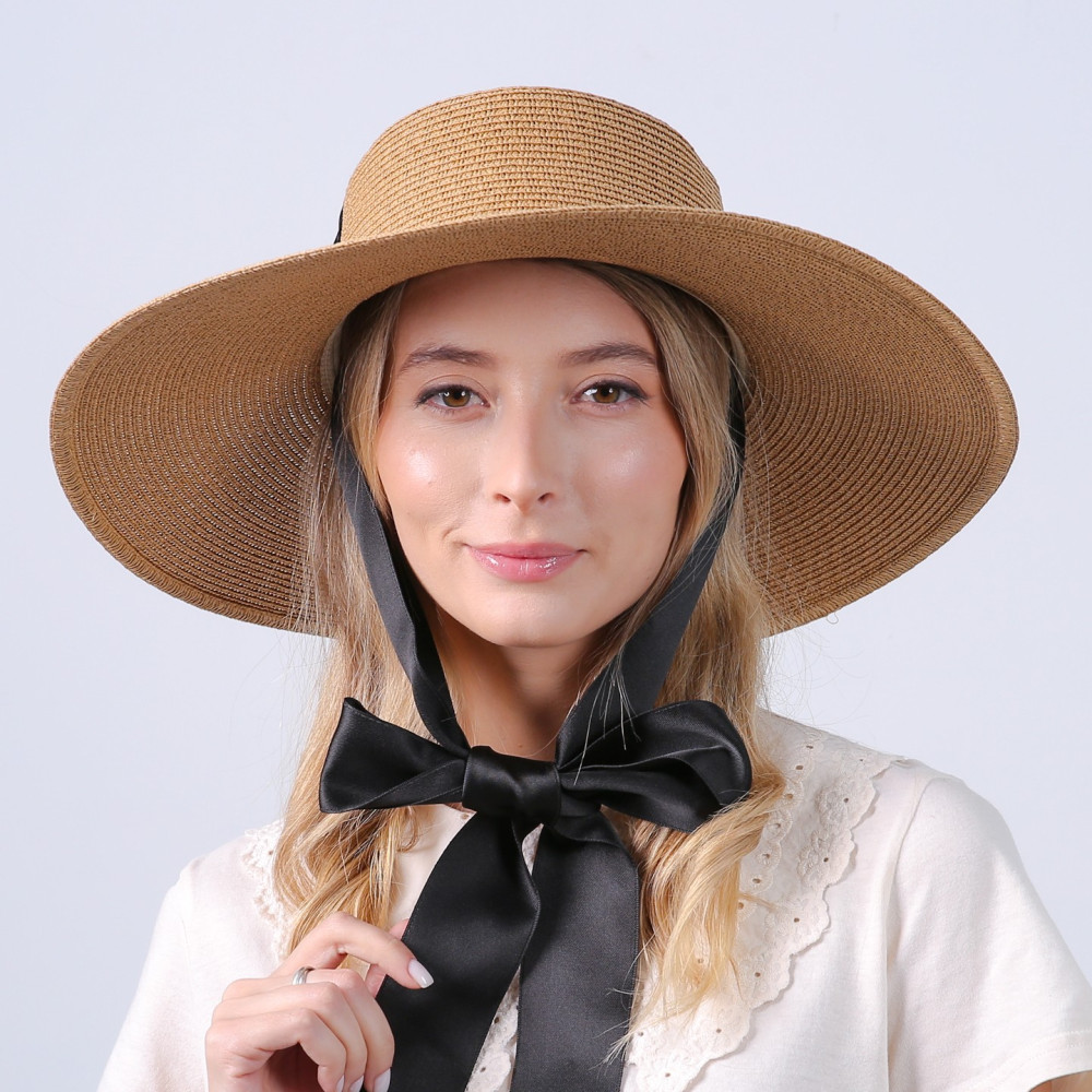 Шляпа с широкими полями женская с лентой-завязкой бумага бежевая ПЕРИС 735-170