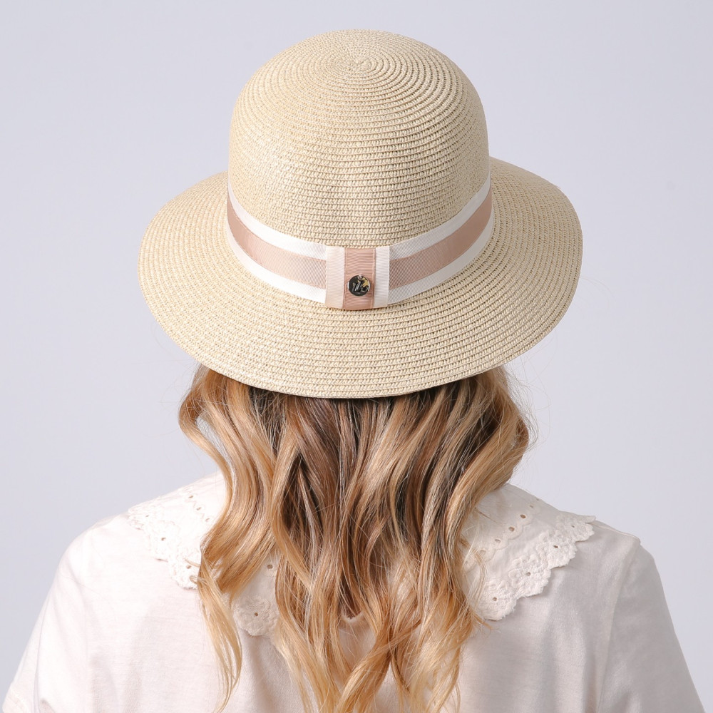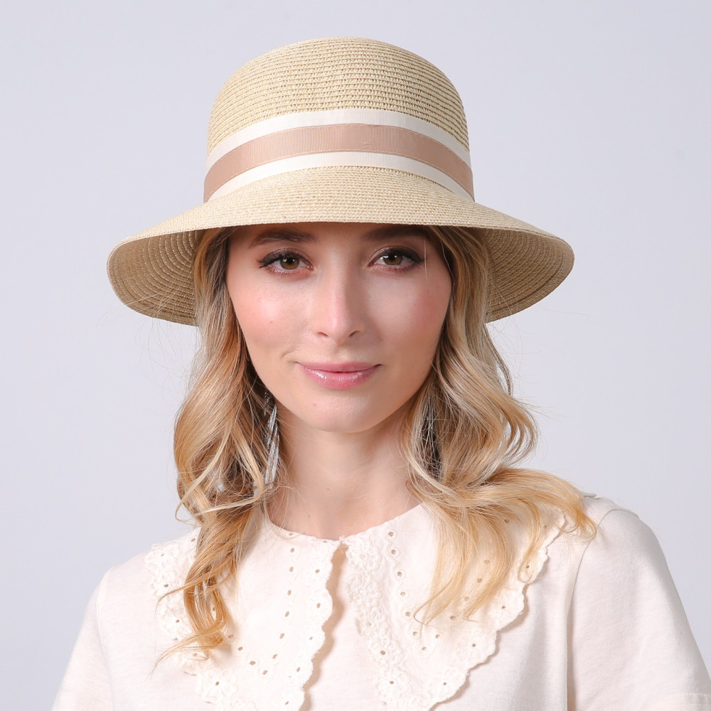 Шляпа со средними полями женская с лентой бумага бежевая ХЕДЛИ 733-756