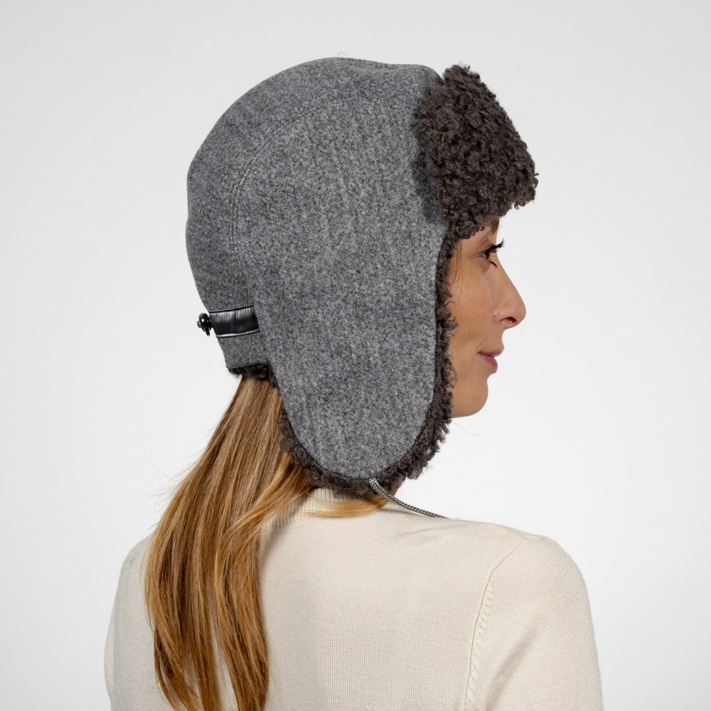 Шапка ушанка женская хлопок / искусственный мех каракуль серая РЕНАТА 664-418