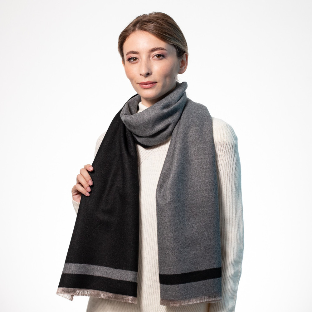 Палантин женский двусторонний кашемир серо-чорний АКИМ 554-627
