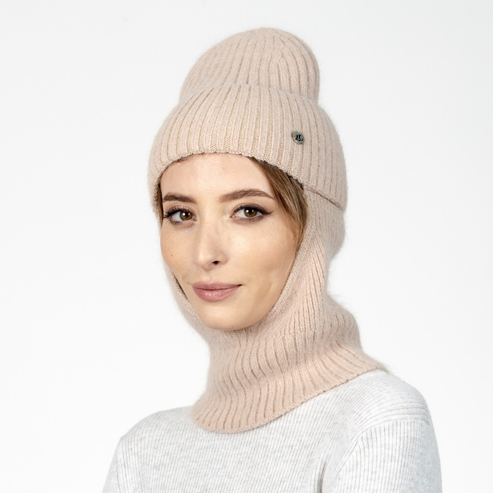 Шапка-балаклава жіноча ангора бежева НІКА 581-531