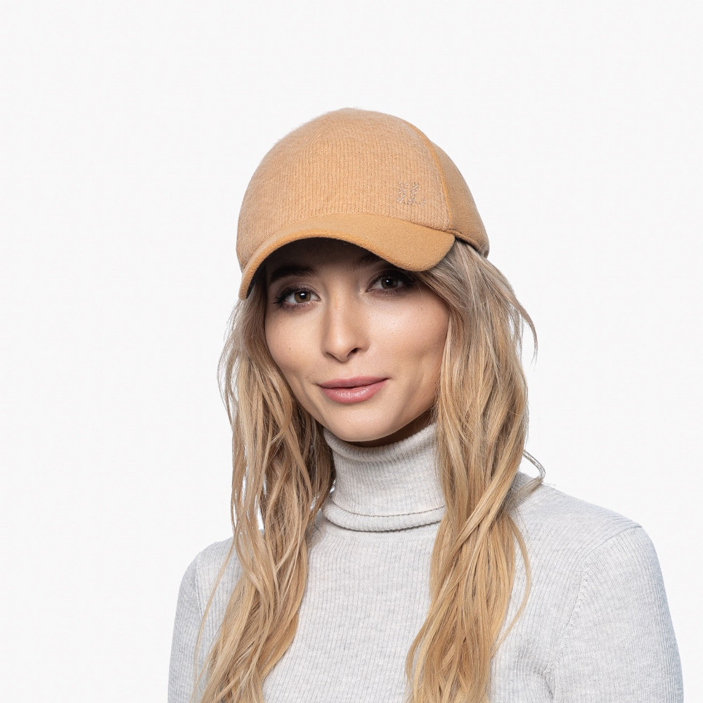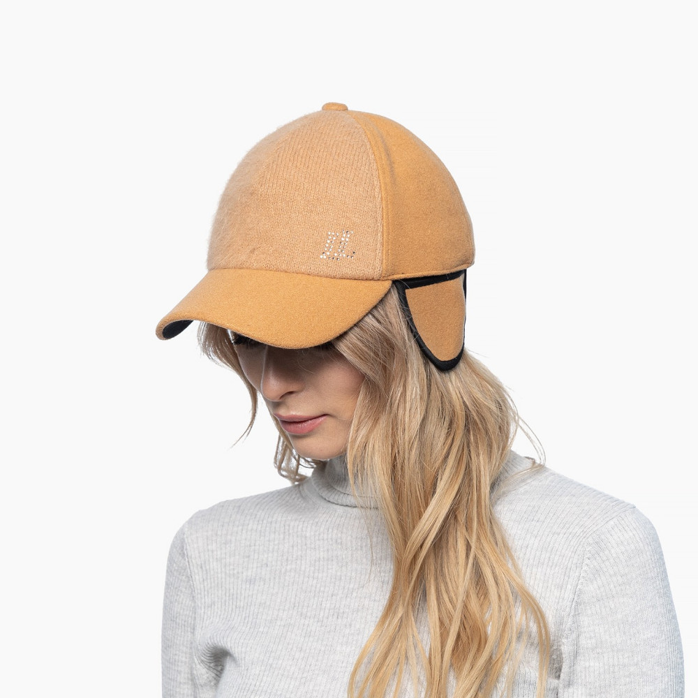 Бейсболка з регулятором і вушками жіноча ангора/кашемір помаранчева КЛАРІС 323-797