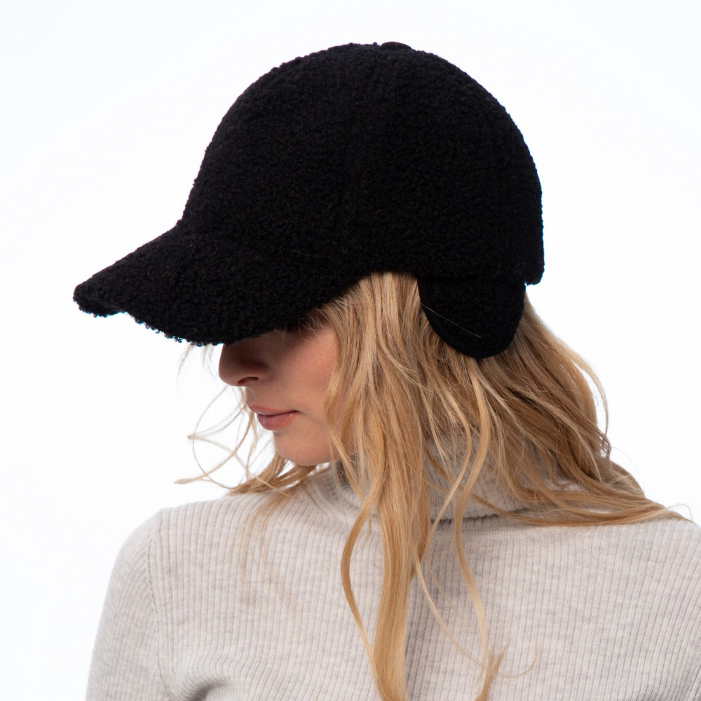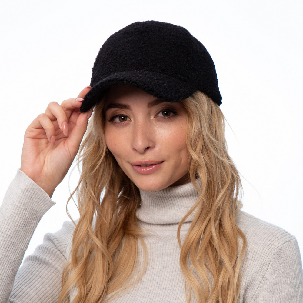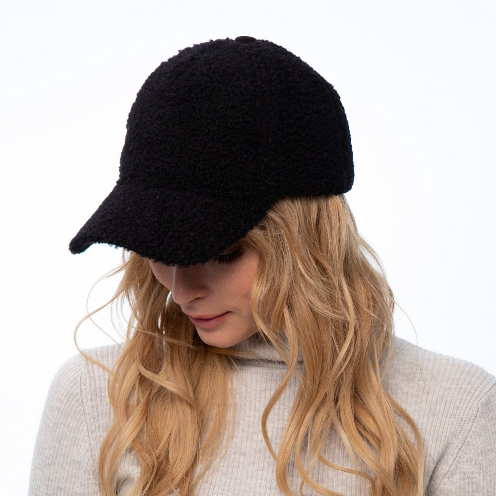 Бейсболка з регулятором і вушками жіноча штучне хутро каракуль чорна JADE 754-158