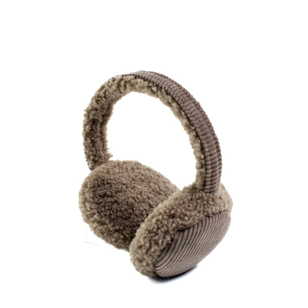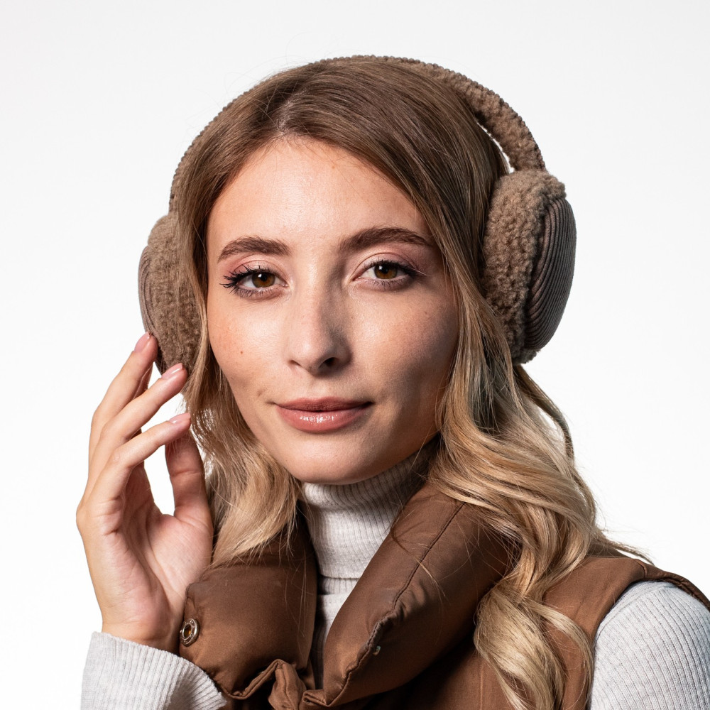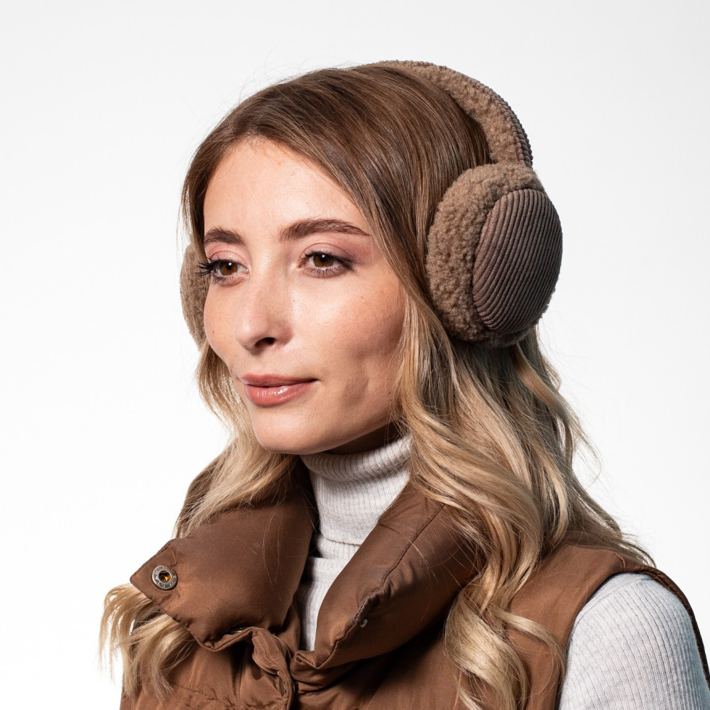 Хутряні навушники жіночі штучне хутро каракуль з вельветом бежеві ВЕЛЕС 554-214
