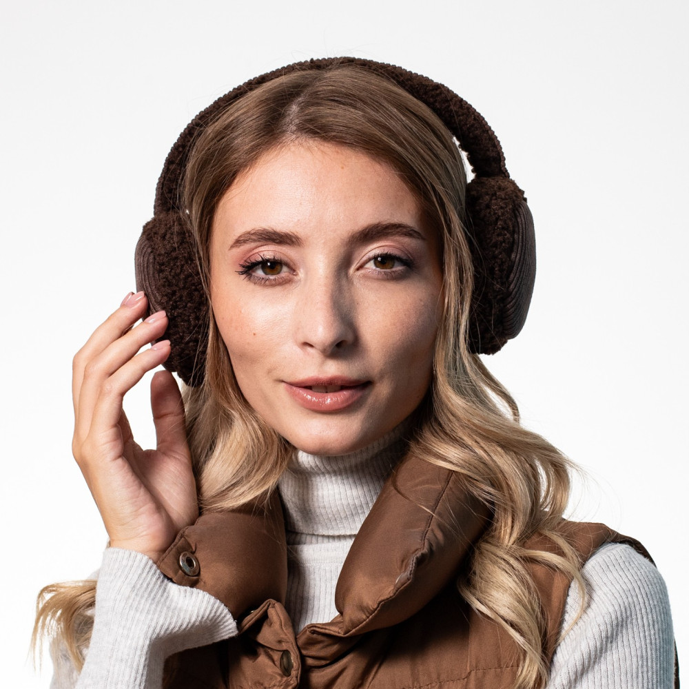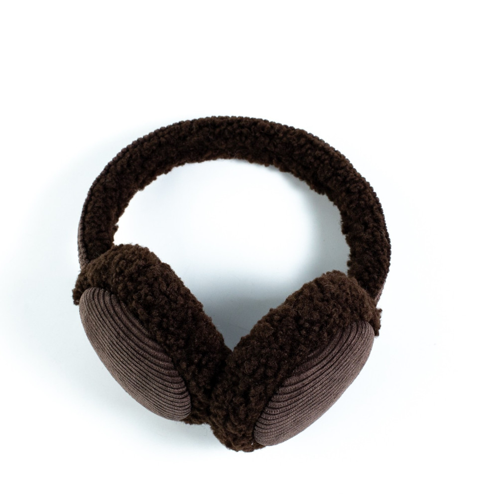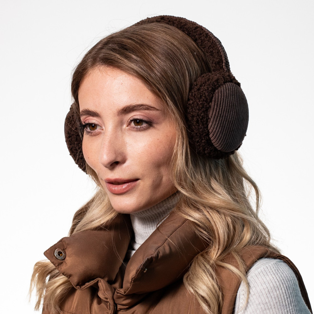 Хутряні навушники жіночі штучне хутро каракуль з вельветом коричневі ВЕЛЕС 554-207