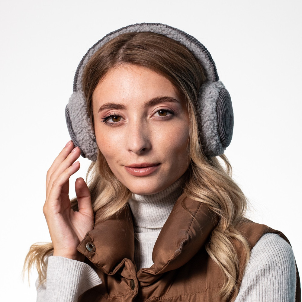 Хутряні навушники жіночі штучне хутро каракуль з вельветом сірі ВЕЛЕС 554-184