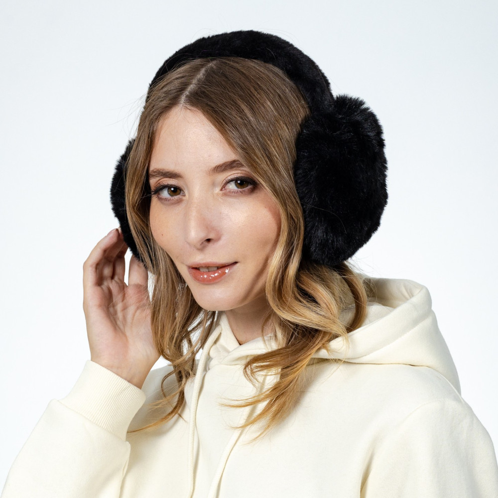 Хутряні навушники жіночі штучне хутро кролик чорні НІЛАЙ 565-272