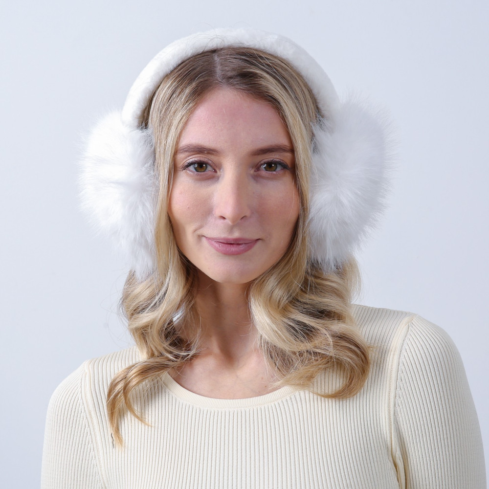 Хутряні навушники жіночі штучне хутро песець білі АВЕЛЬ 929-722