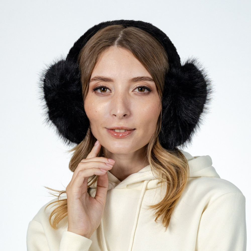 Хутряні навушники жіночі штучне хутро песець чорні АВЕЛЬ 565-302