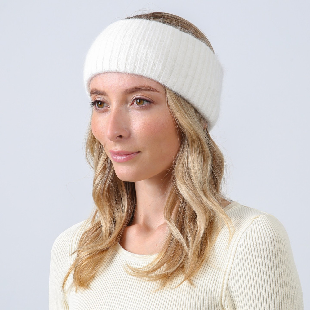 Пов'язка на голову жіноча віскоза з ангорою біла ЛЕАРА 880-429