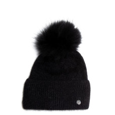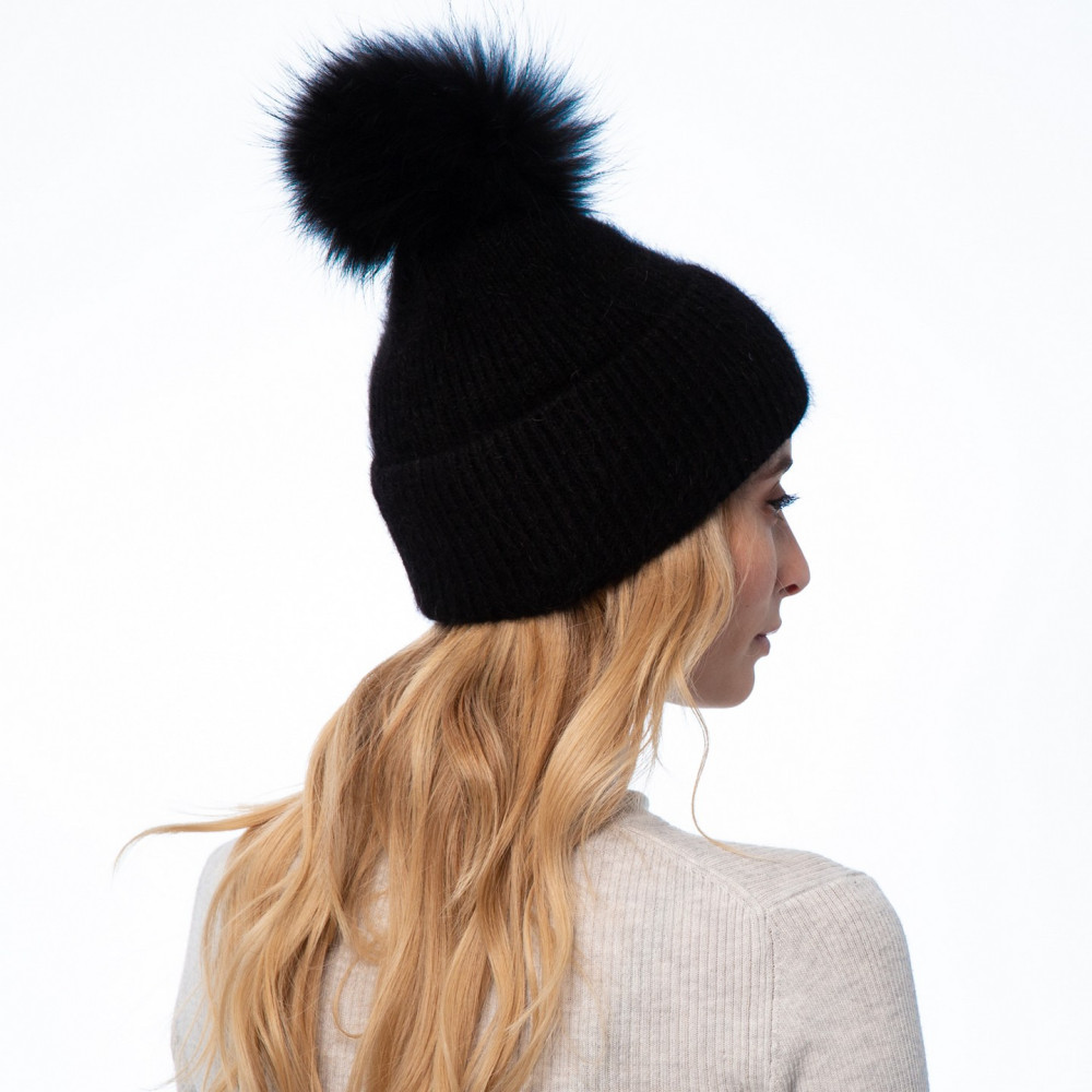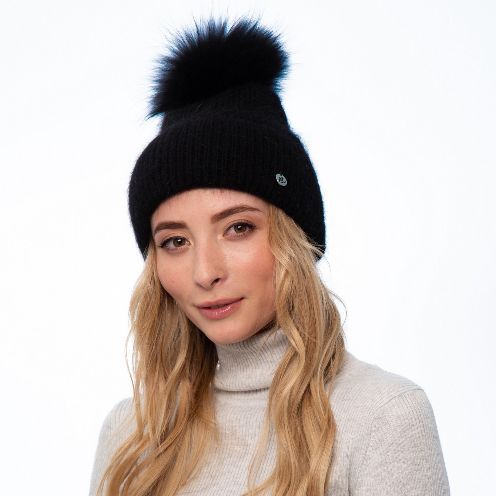 Шапка з помпоном жіноча ангора чорна SILVIA 259-416