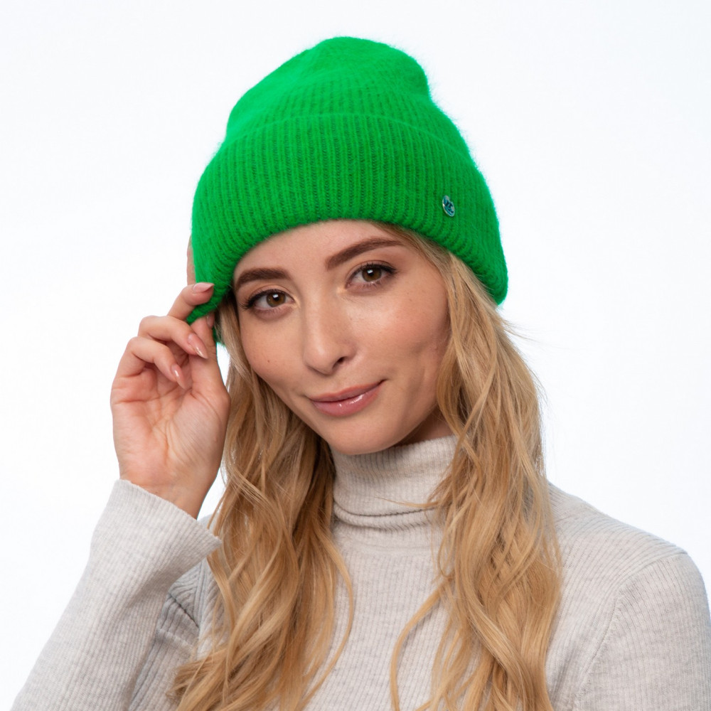 Шапка біні жіноча ангора зелена LORETTE 261-426
