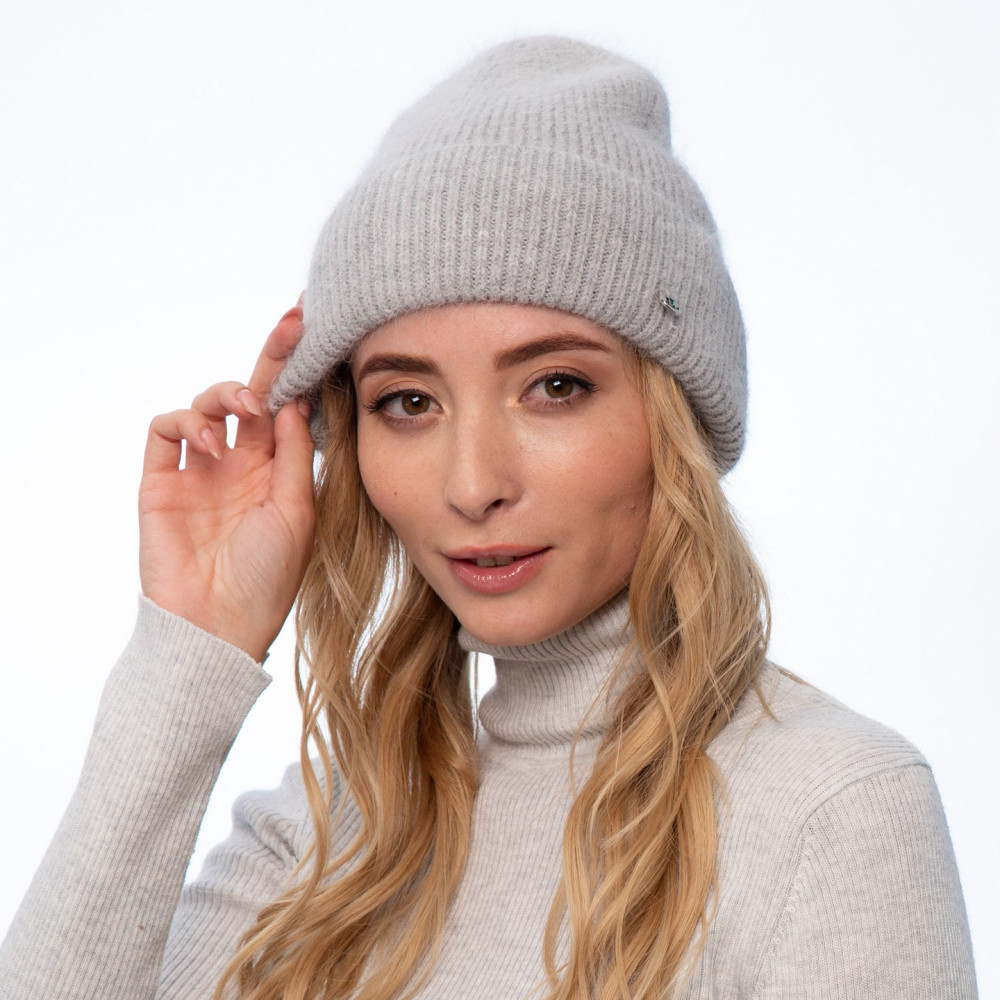 Шапка біні жіноча ангора сіра LORETTE 261-433