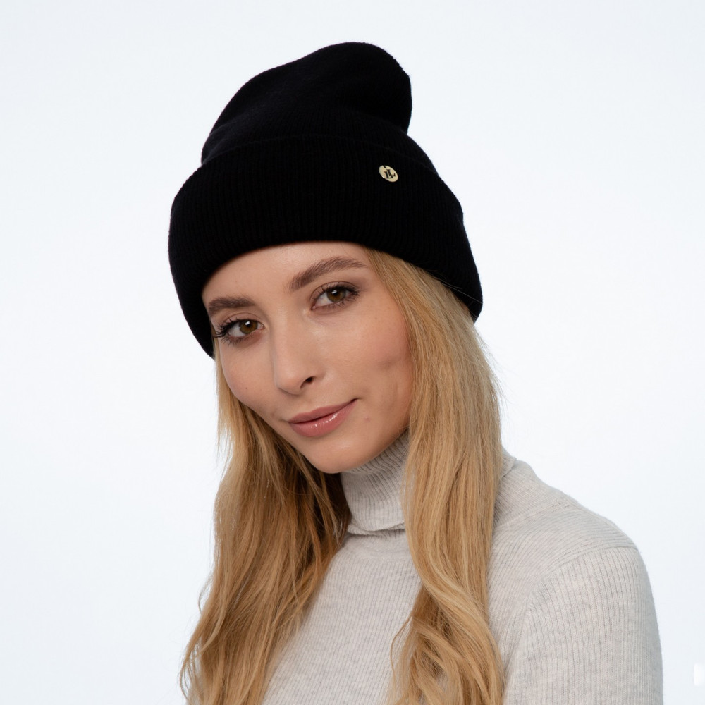 Шапка біні жіноча віскоза з вовною чорна COURTNEY 242-227