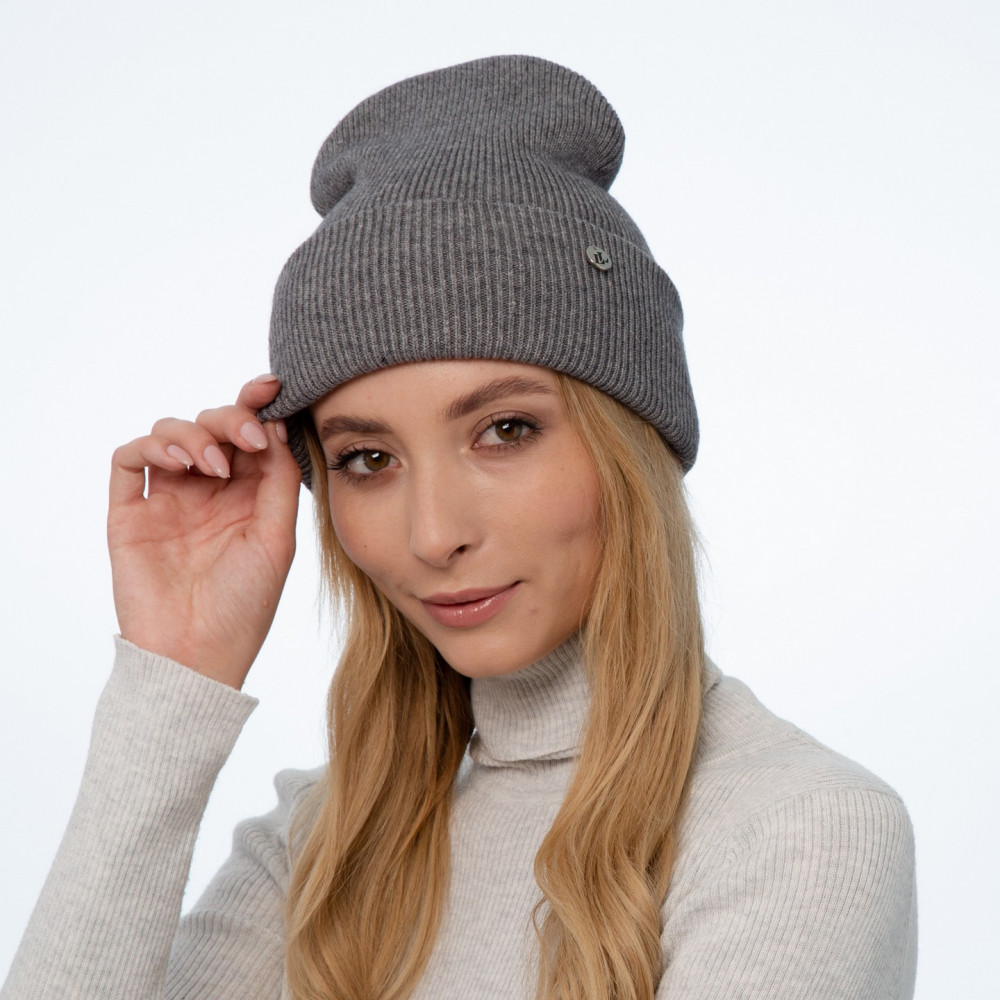 Шапка біні жіноча віскоза з вовною сіра COURTNEY 242-234