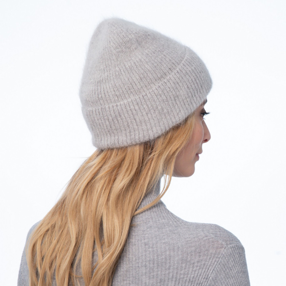 Шапка біні жіноча ангора сіра RACHEL 237-049
