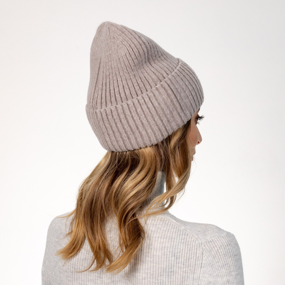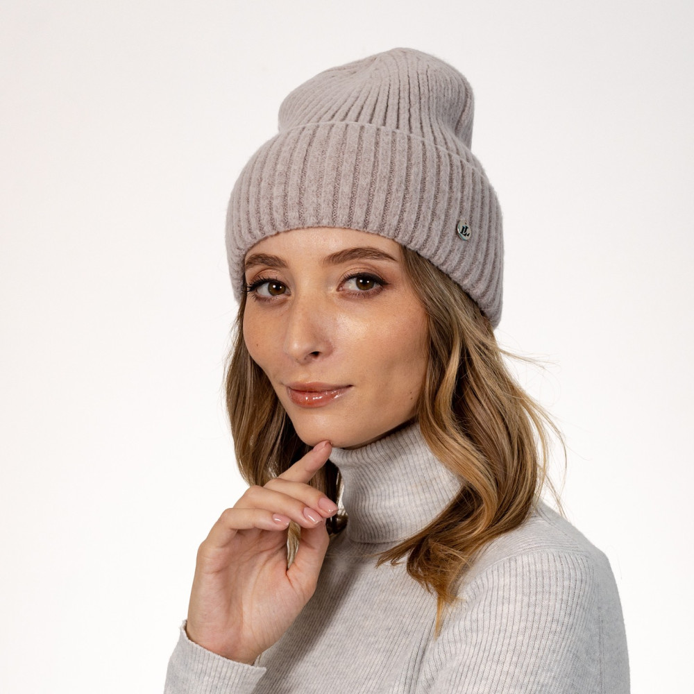 Шапка біні жіноча вовна мериноса коричнева EVELYN 955-586