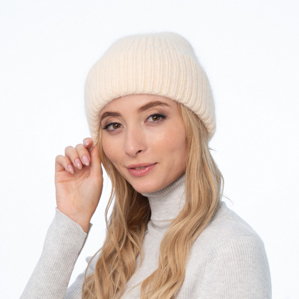 Шапка біні жіноча ангора бежева JESSIE 040-373