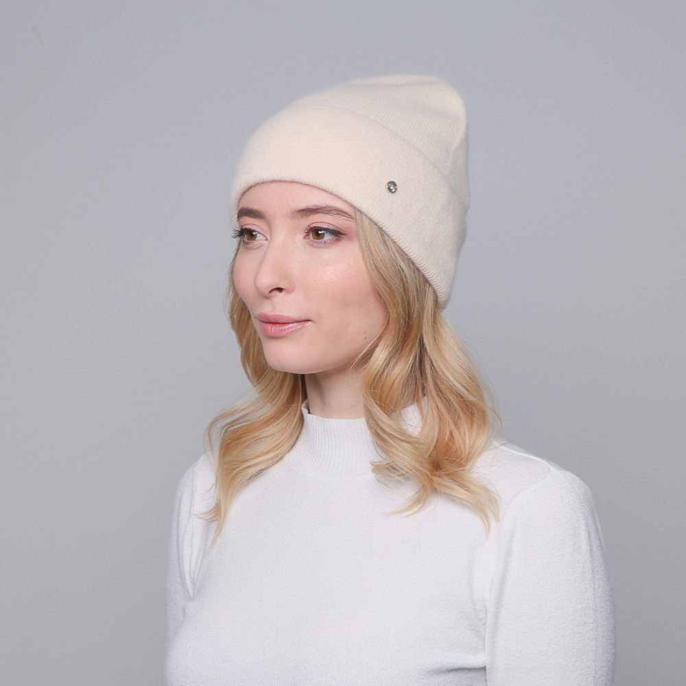 Шапка біні жіноча ангора бежева JUNE 001-046