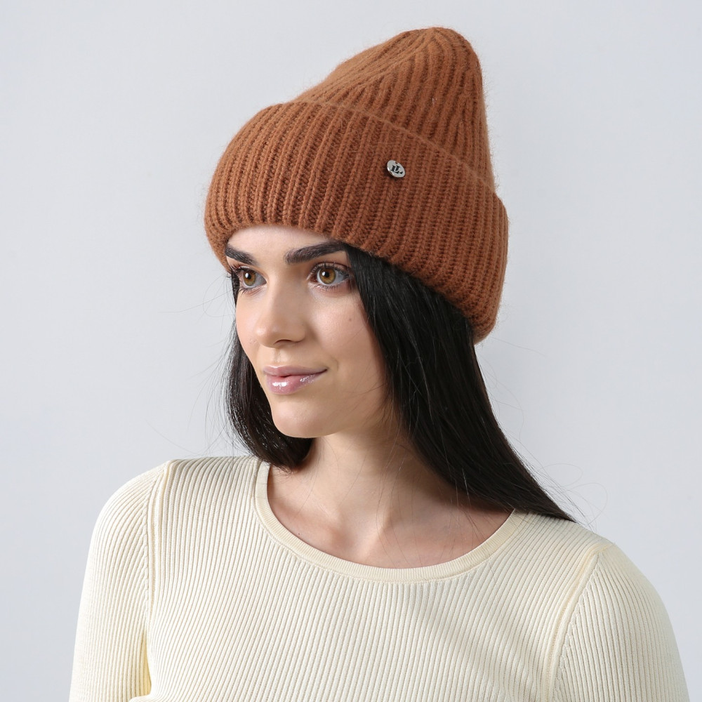 Шапка біні жіноча віскоза з ангорою коричнева AIMY 259-256