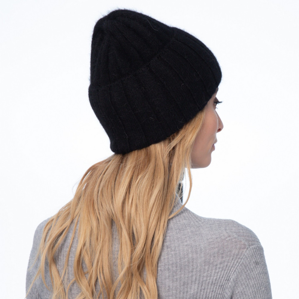 Шапка біні жіноча ангора чорна CHRISTA 237-261