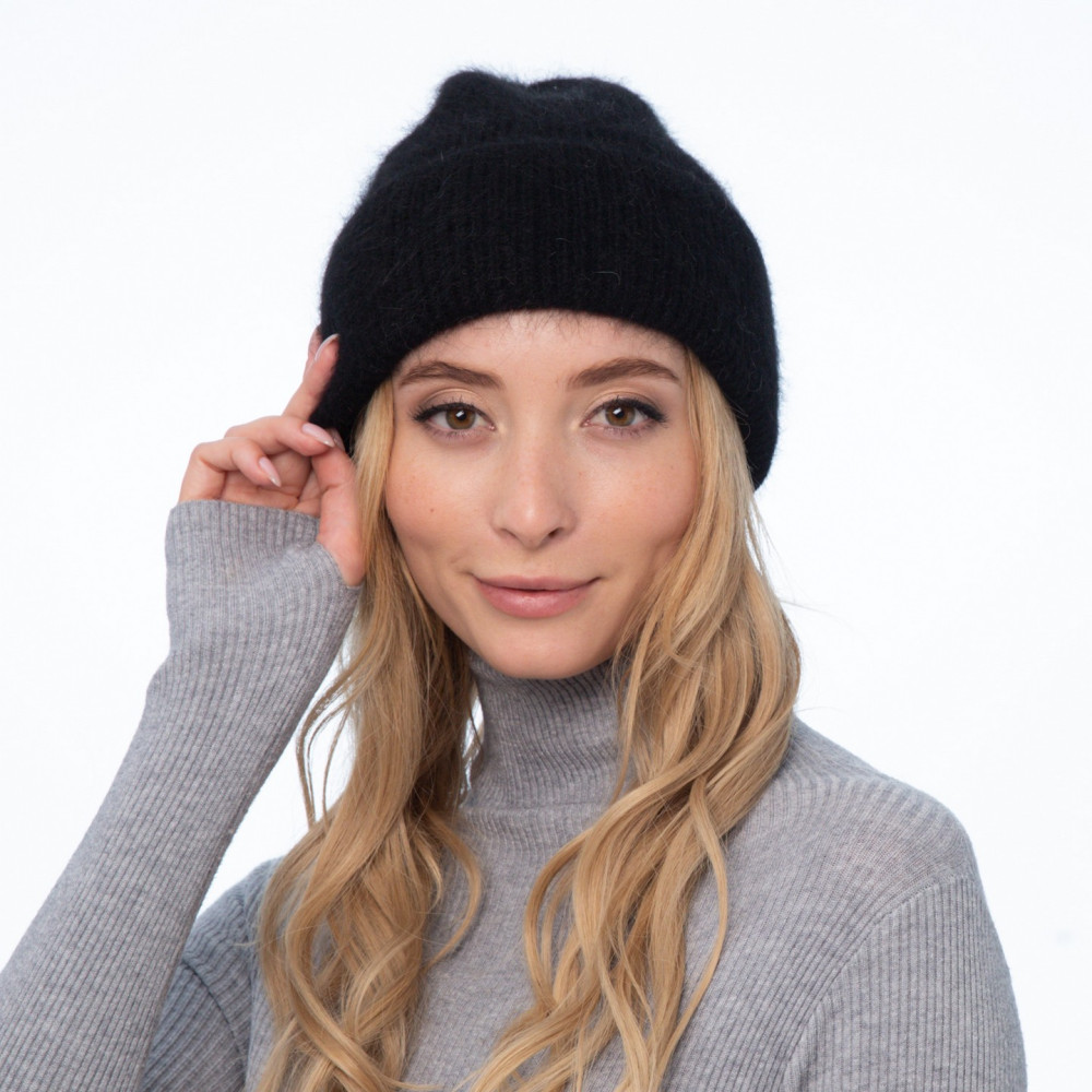 Шапка біні жіноча ангора чорна RACHEL 237-032