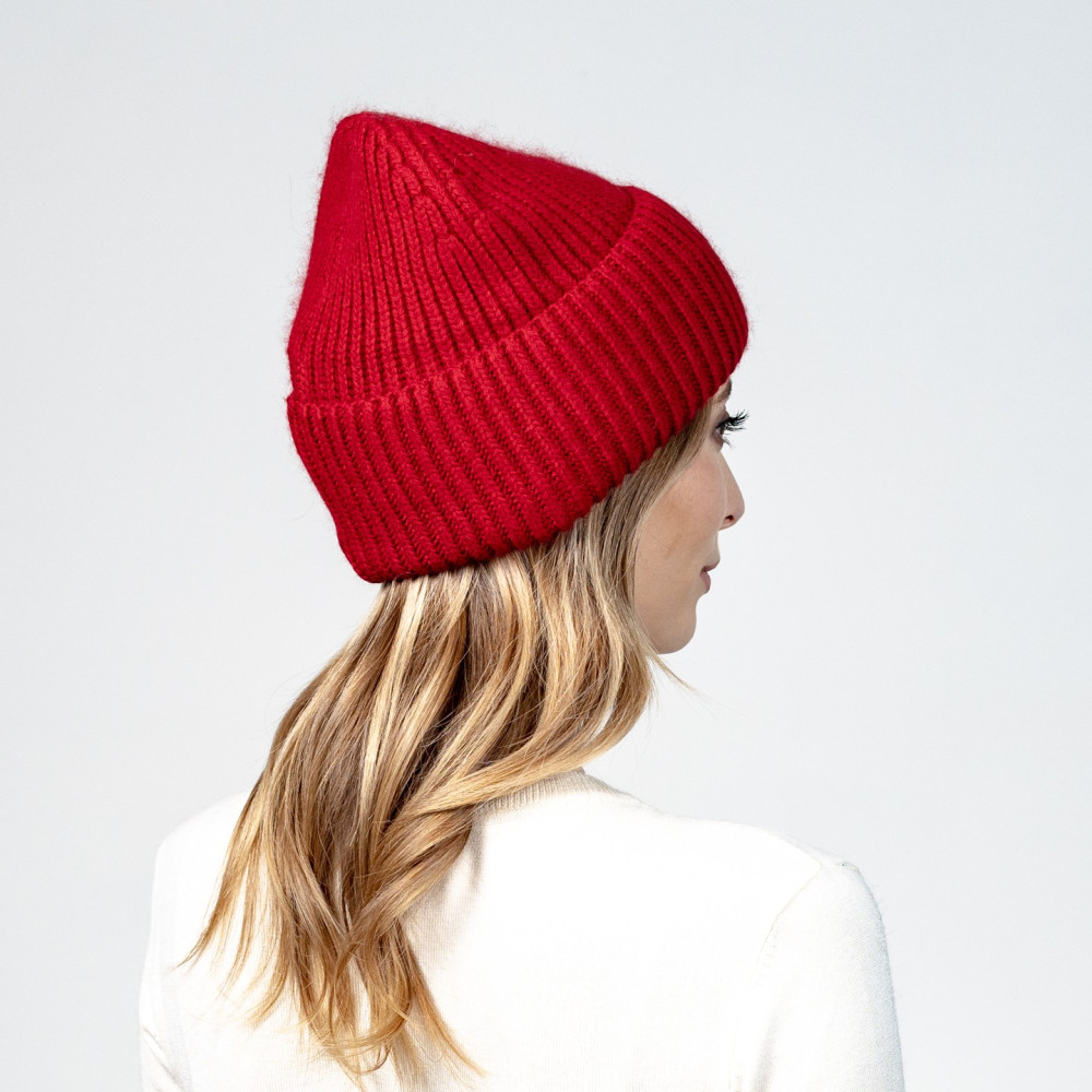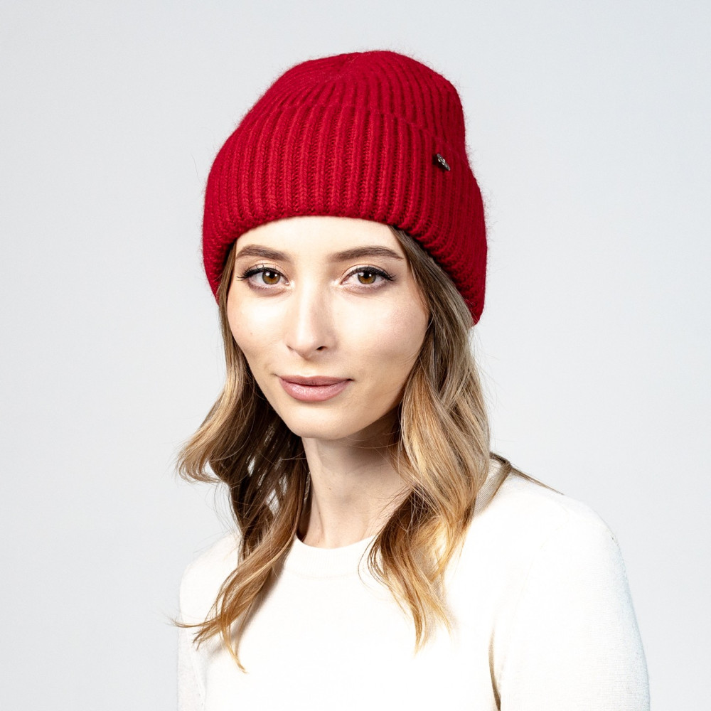 Шапка біні жіноча вовна червона JOAN 594-340