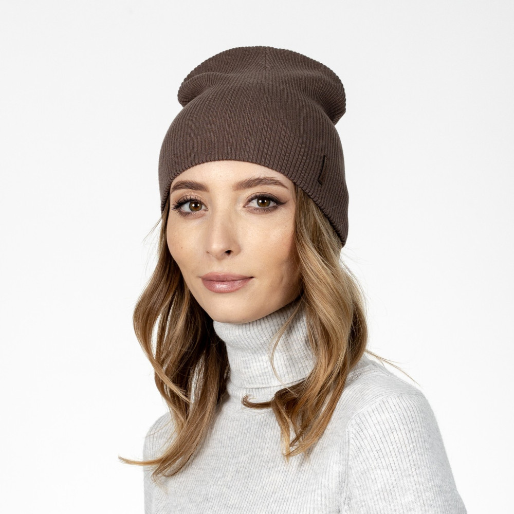 Шапка біні жіноча віскоза з вовною коричнева ЕЛІЗАР 584-365