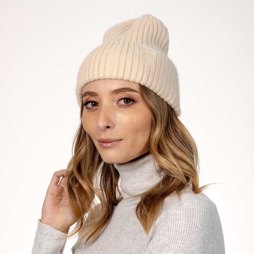 Шапка біні жіноча віскоза з ангорою молочна АРІЕЛЬ 570-528