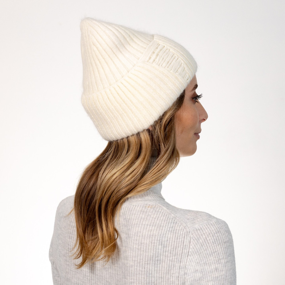 Шапка біні жіноча віскоза з ангорою біла АРІЕЛЬ 570-542