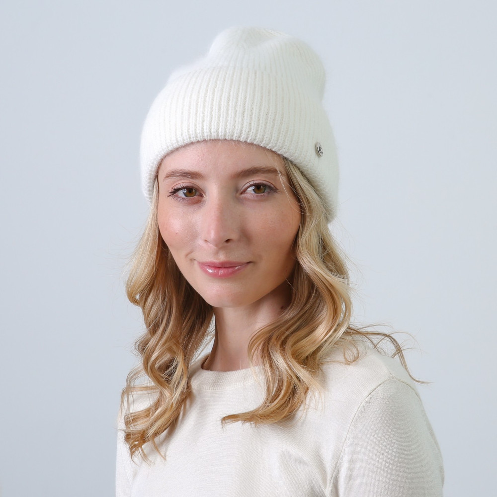 Шапка біні жіноча віскоза з ангорою біла МОРТІША 863-927