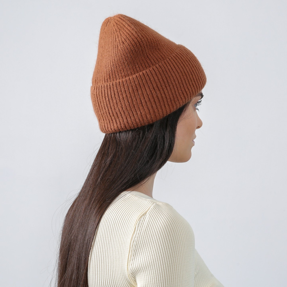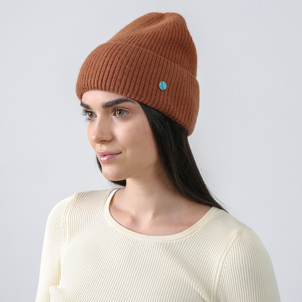Шапка біні жіноча віскоза з ангорою коричнева МОРТІША 953-758