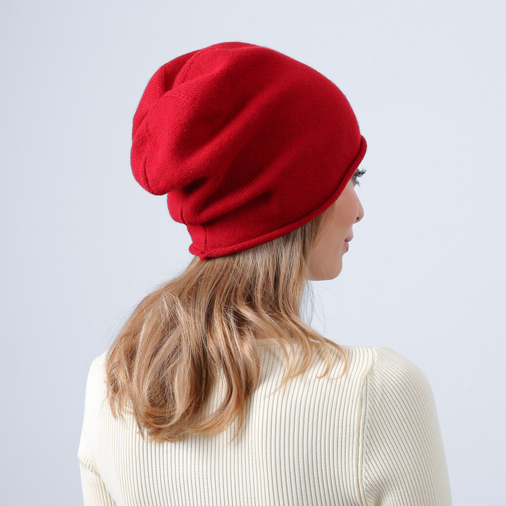 Шапка біні жіноча вовна червона АЛІМ 593-954