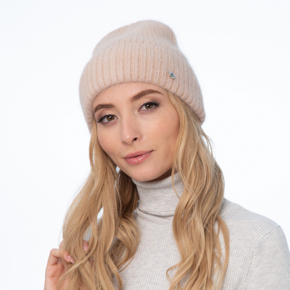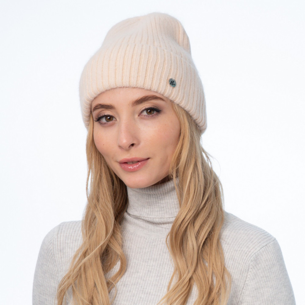 Шапка біні жіноча ангора бежева EMILY 658-753