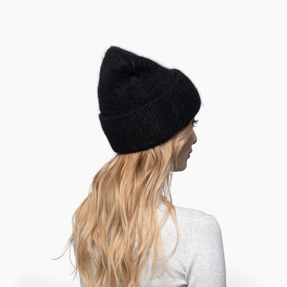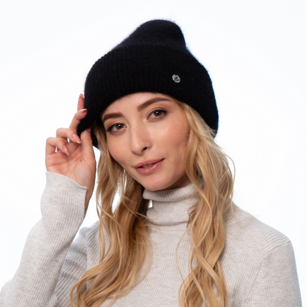 Шапка біні жіноча ангора чорна SOPHIA 670-007