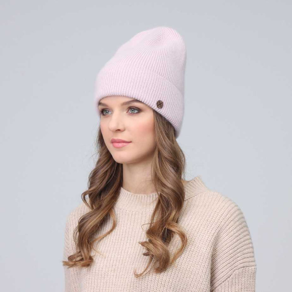 Шапка біні жіноча ангора рожева WILDE 251-985